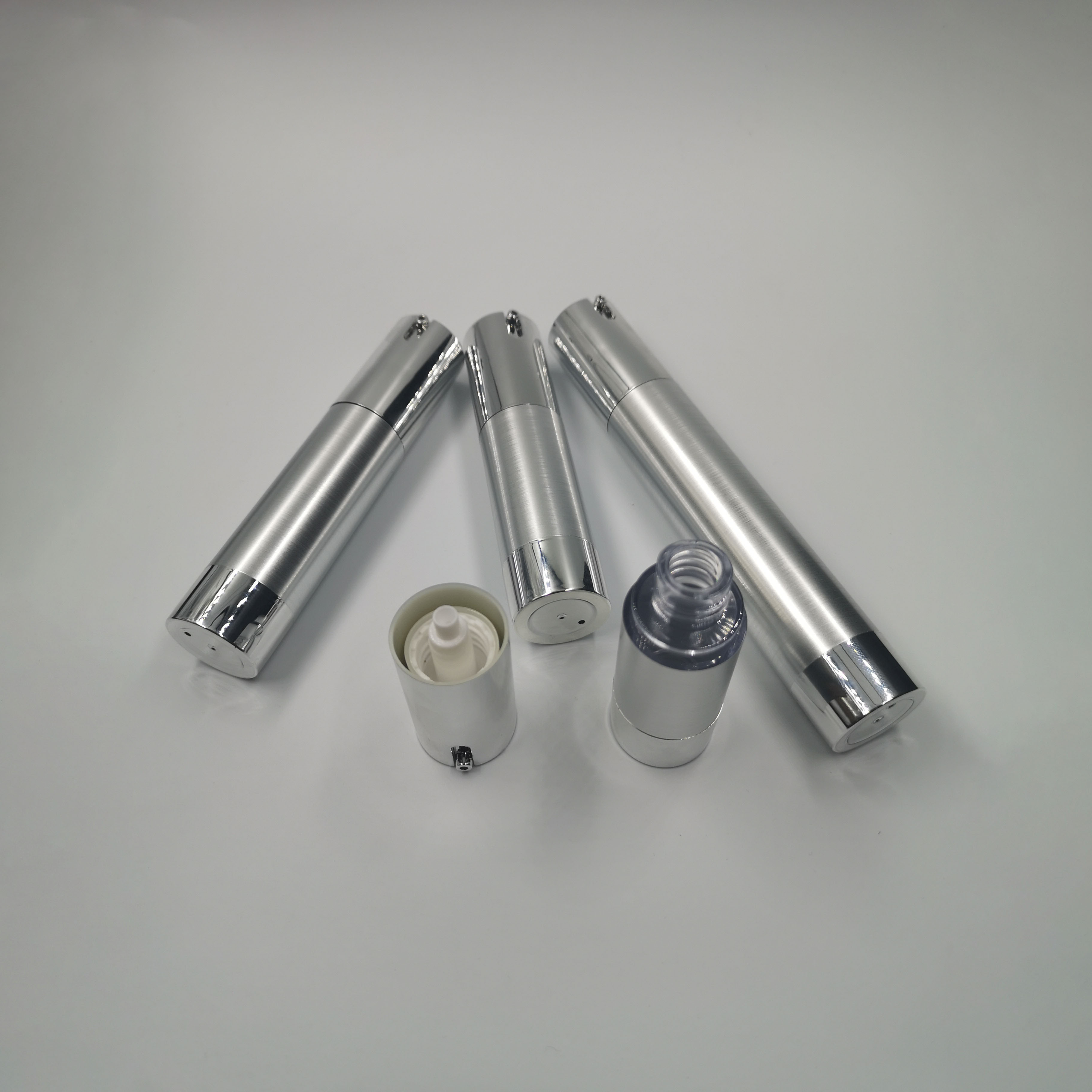 Pearly 10ml 15ml 20ml 30ml silver plastic cap-less round slide nozzle cosmetic manufacturer lotion airless pump bottle Images |
