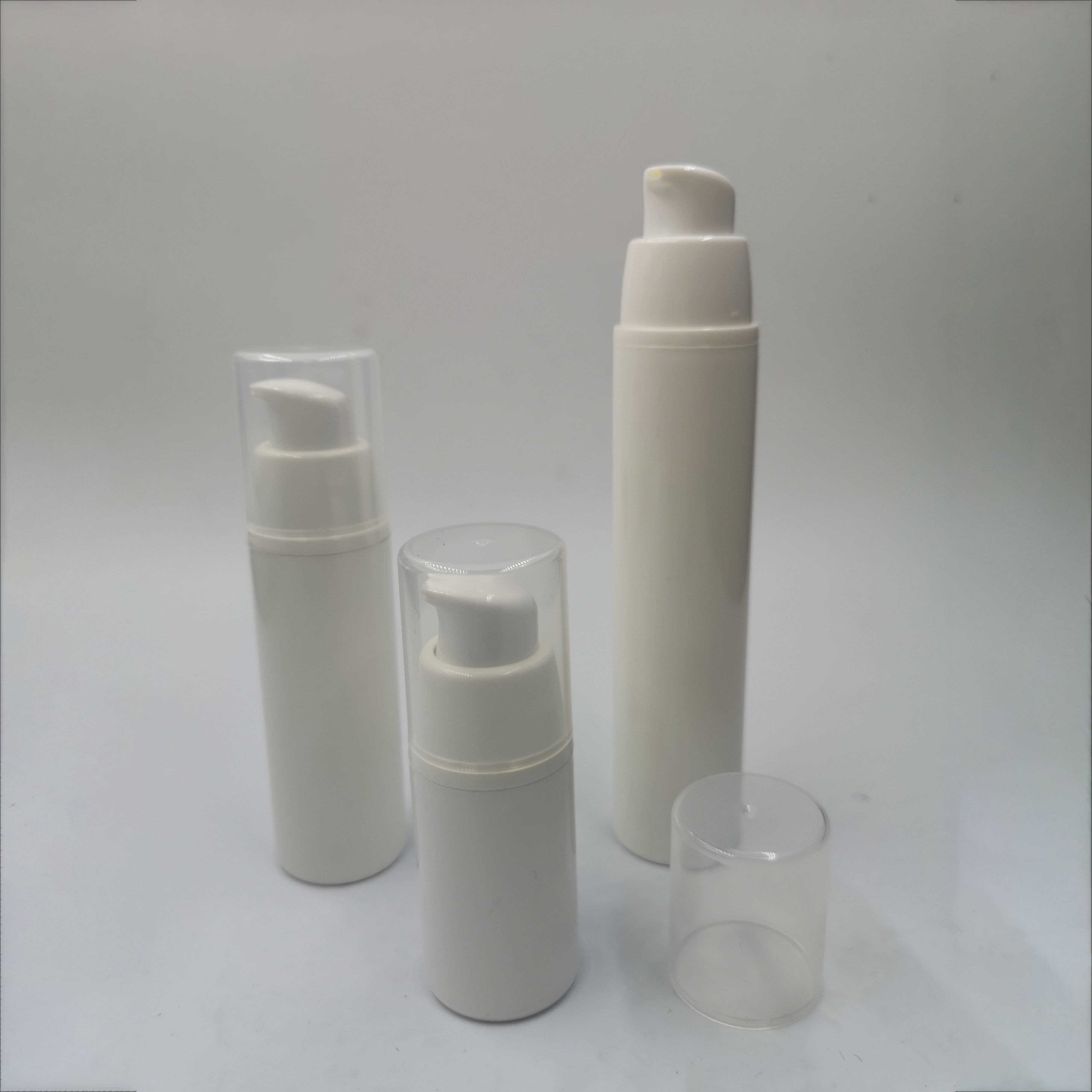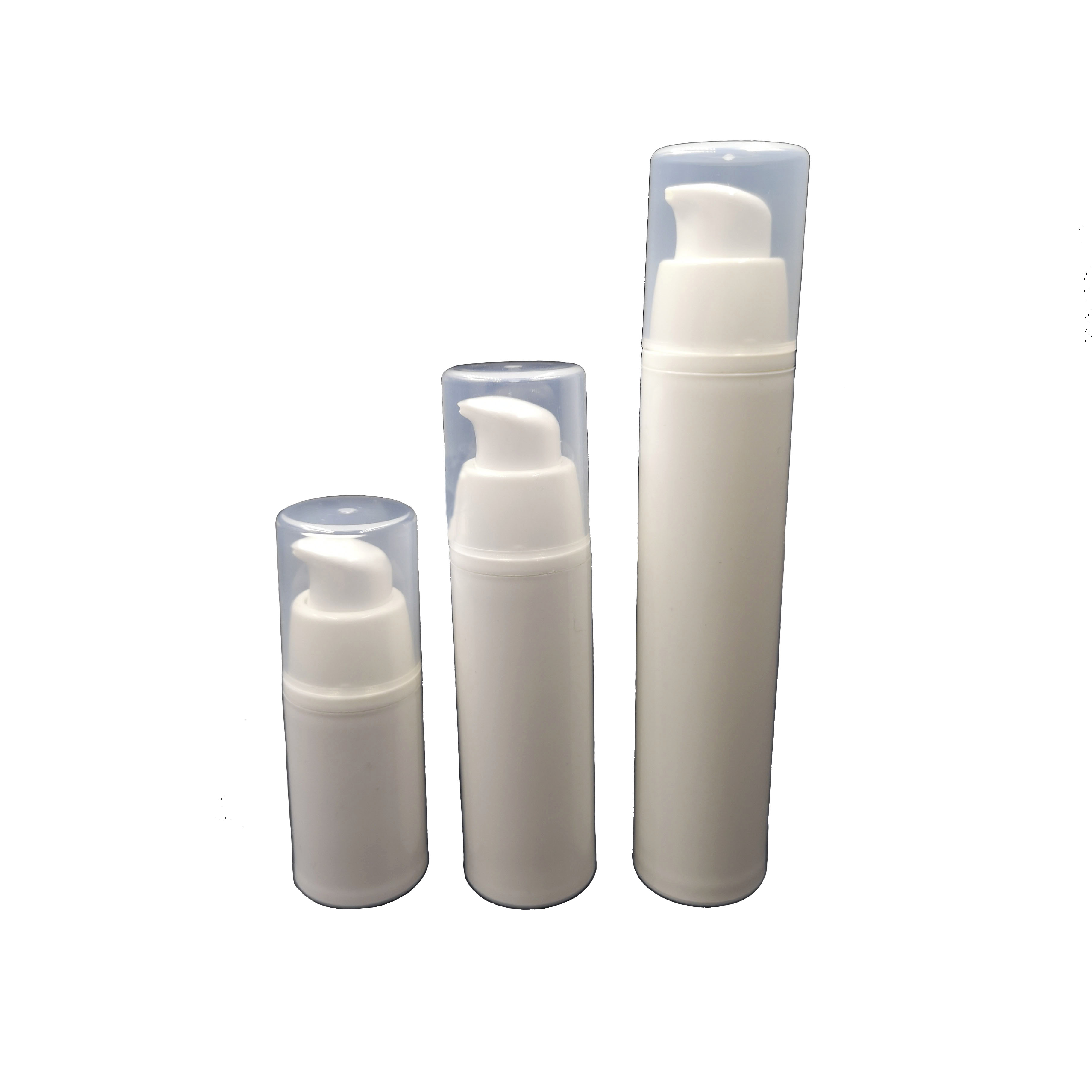 15ml 30ml 50ml white body overcap plastic PP China manufacturer round dispenser airless pump bottle cosmetic